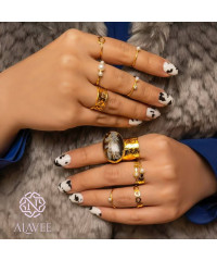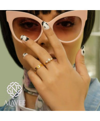 انگشتر سه مروارید طلا 18 عیار با طراحی جذاب سه مروارید گرد و سفید