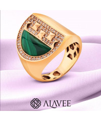 انگشتر پیرامید طلا 18 عیار به همراه شبه سنگ مالاکیت سبز رنگ