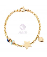 دستبند زنجیری طلا 18 عیار با آویزهای جذاب ستاره و صدف
