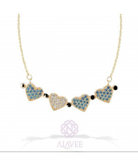 گردنبند دو رو قلب طلا 18 عیار با طراحی قلب های منعطف به همراه نگین های اتمی جذاب