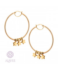 گوشواره حلقه ستاره ایی طلا 18 عیار به همراه آویزهای زیبای ستاره ای در سایز بزرگ