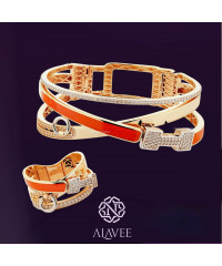 نیم ست بنگل و انگشتر هرمس با میناکاری نارنجی طلا 18 عیار با نگین های اتمی زیبا